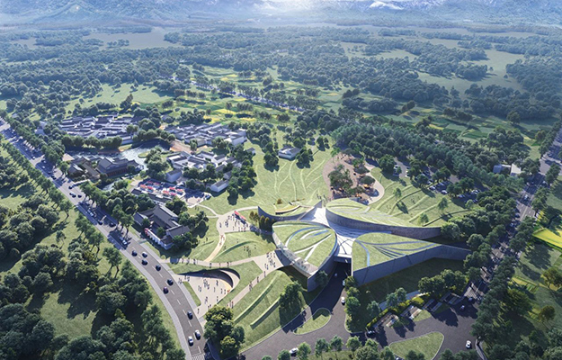 聽(tīng)聞西山有茶,陸羽偕友探茶,居水月寺,于墨佐君壇采茶品之。詩(shī)僧皎然來(lái)聚,《訪(fǎng)陸》詩(shī)就。古寺無(wú)言,茶香裊裊里,述說(shuō)著(zhù)茶圣、古寺、西山,以及碧螺春的往事,也開(kāi)啟了關(guān)于碧螺春茶文化展示館的設計緣起。